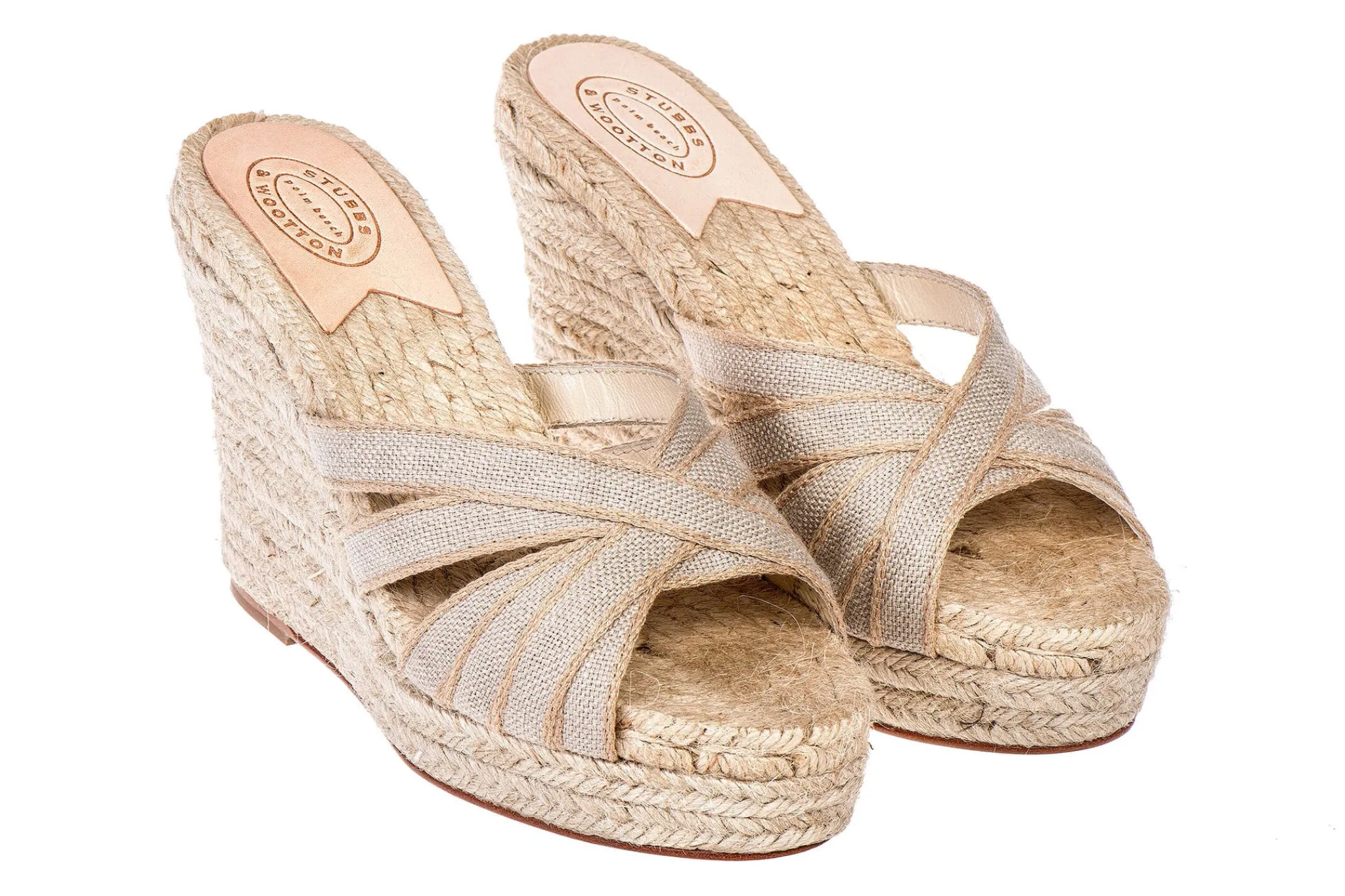 Our Grace Rib Crudo Espadrille features a Crudo Grosgrain Ribbon and Jute Sole. Meticulously Hand-crafted in Spain. The heel is 5 inches in height. Leather soled. True to American sizing. If you wear a half size typically, go to the size up.