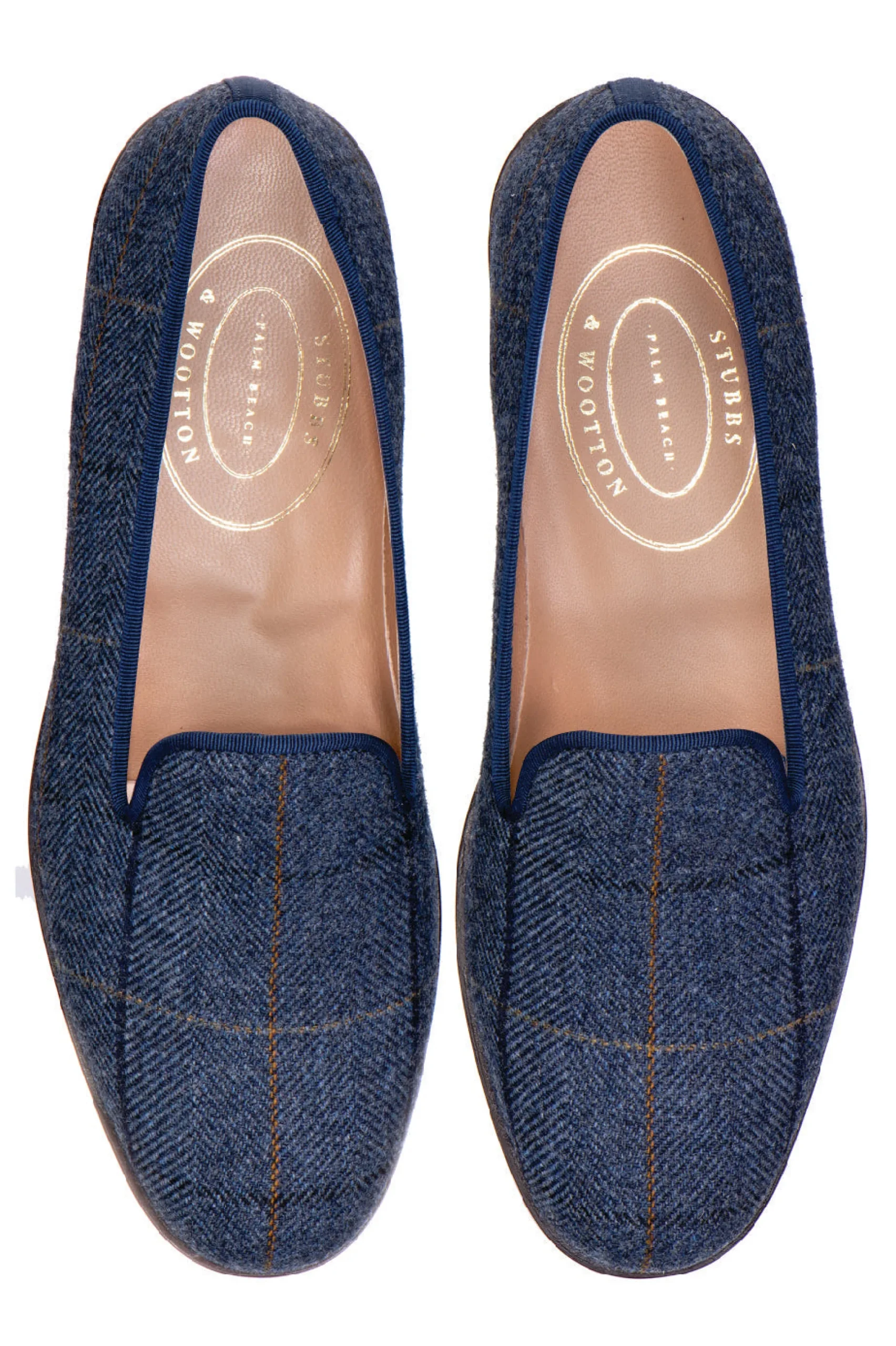 Our Glenshire navy slipper is made with 100% Merino Wool, milled in England. Meticulously Hand-crafted in Spain. Leather lined to provide additional support and comfort. The stacked wooden heel is 3/4″ in height. Leather soled. True to American sizing.